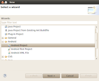 Click on File menu, select New and click on the Others,  from New window, Drag down to Android option, expand it, and select Android Project and Click on Next.