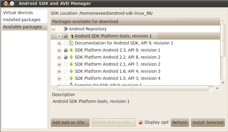 export PATH=${PATH}:/home/naveed/android-sdk/